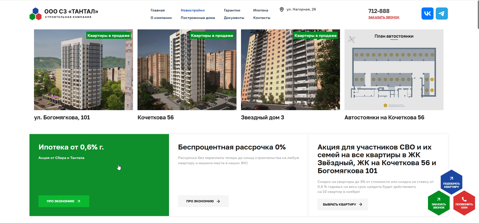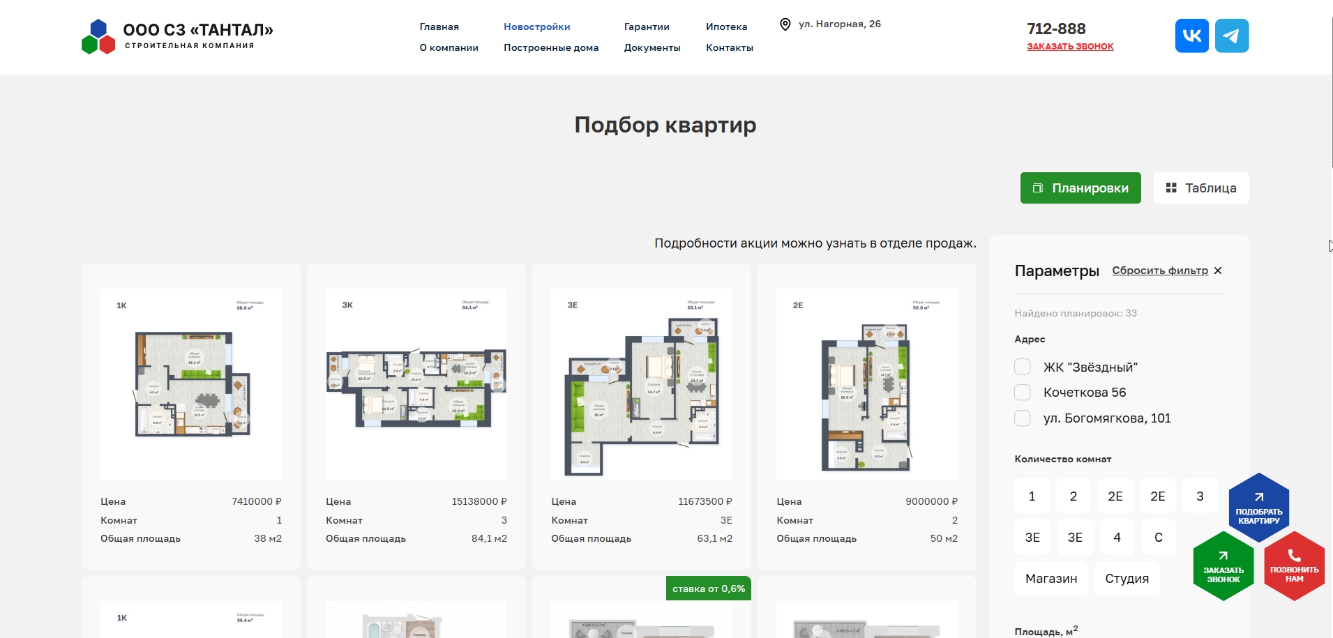 Обновили сайт chita-tantal.ru Удобное отображение новостроек, акций. Ну и, конечно же, подборщик квартир - для максимально удобного поиска нужного варианта)